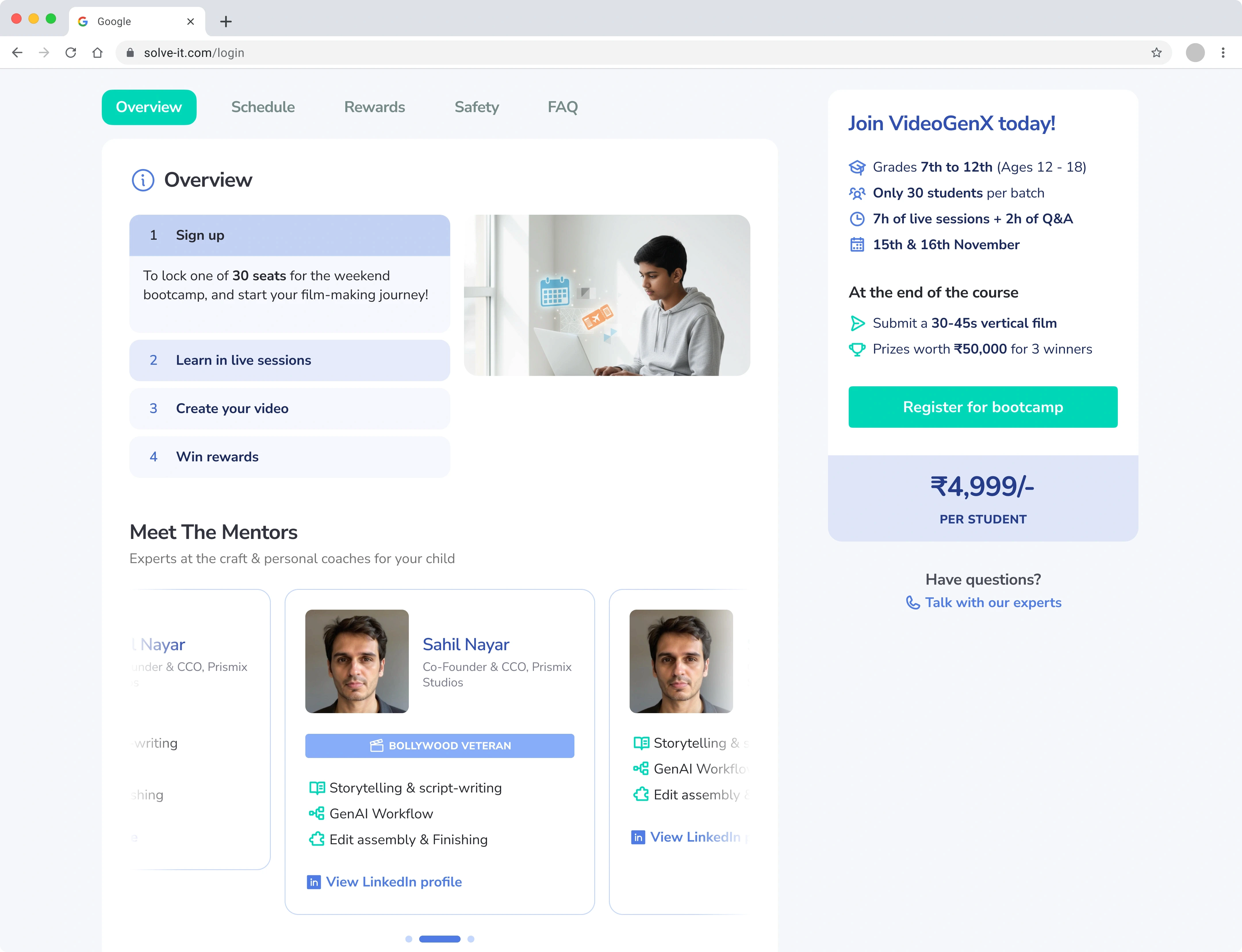 Promotional, conversion-focused webpages for SolveIt's offline partnerships such as bootcamps