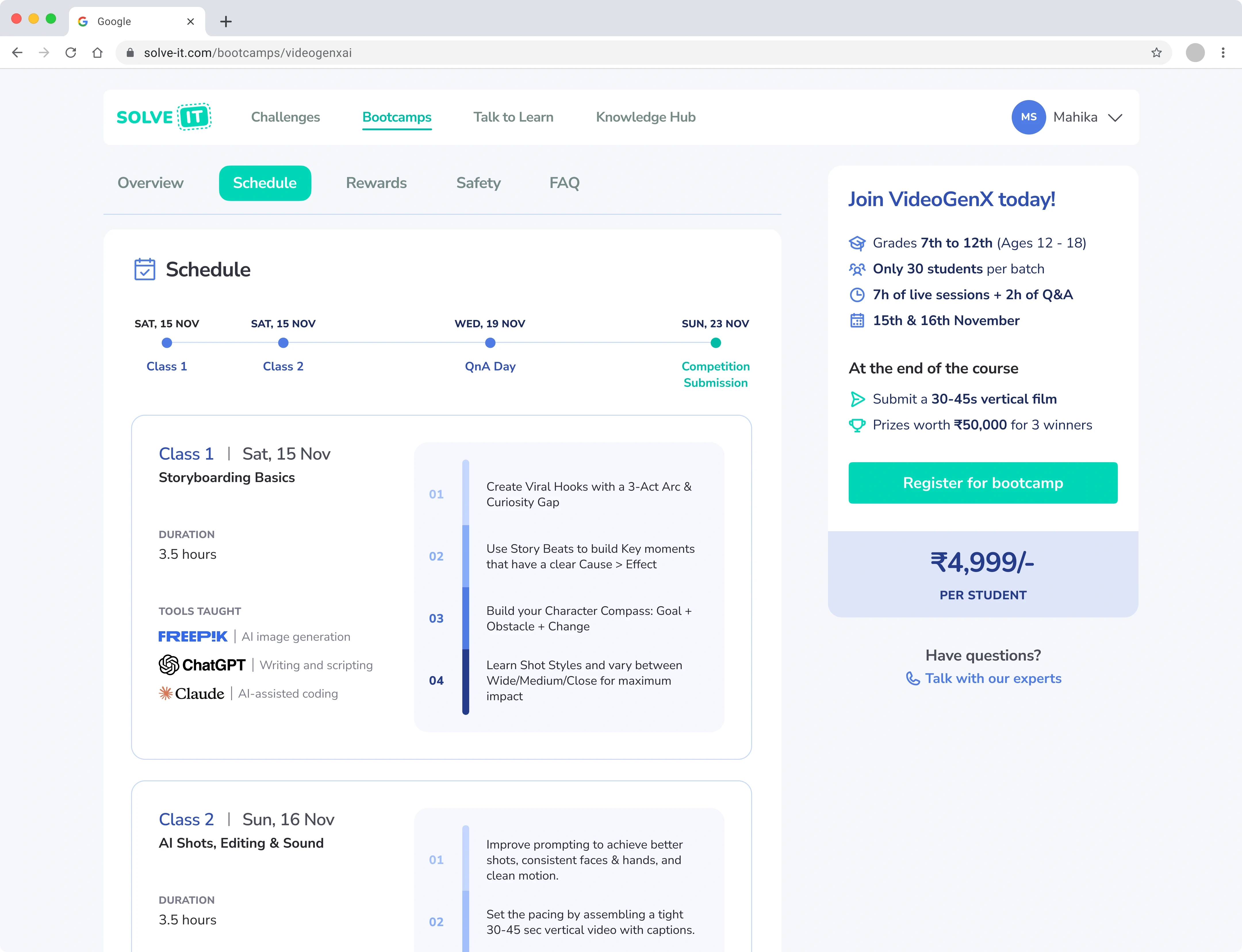 SolveIt is GetSetLearn's foray into EdTech - a webapp that aims to teach middle and high schoolers about critical skills for the 21st century such as leveraging AI and robotics.