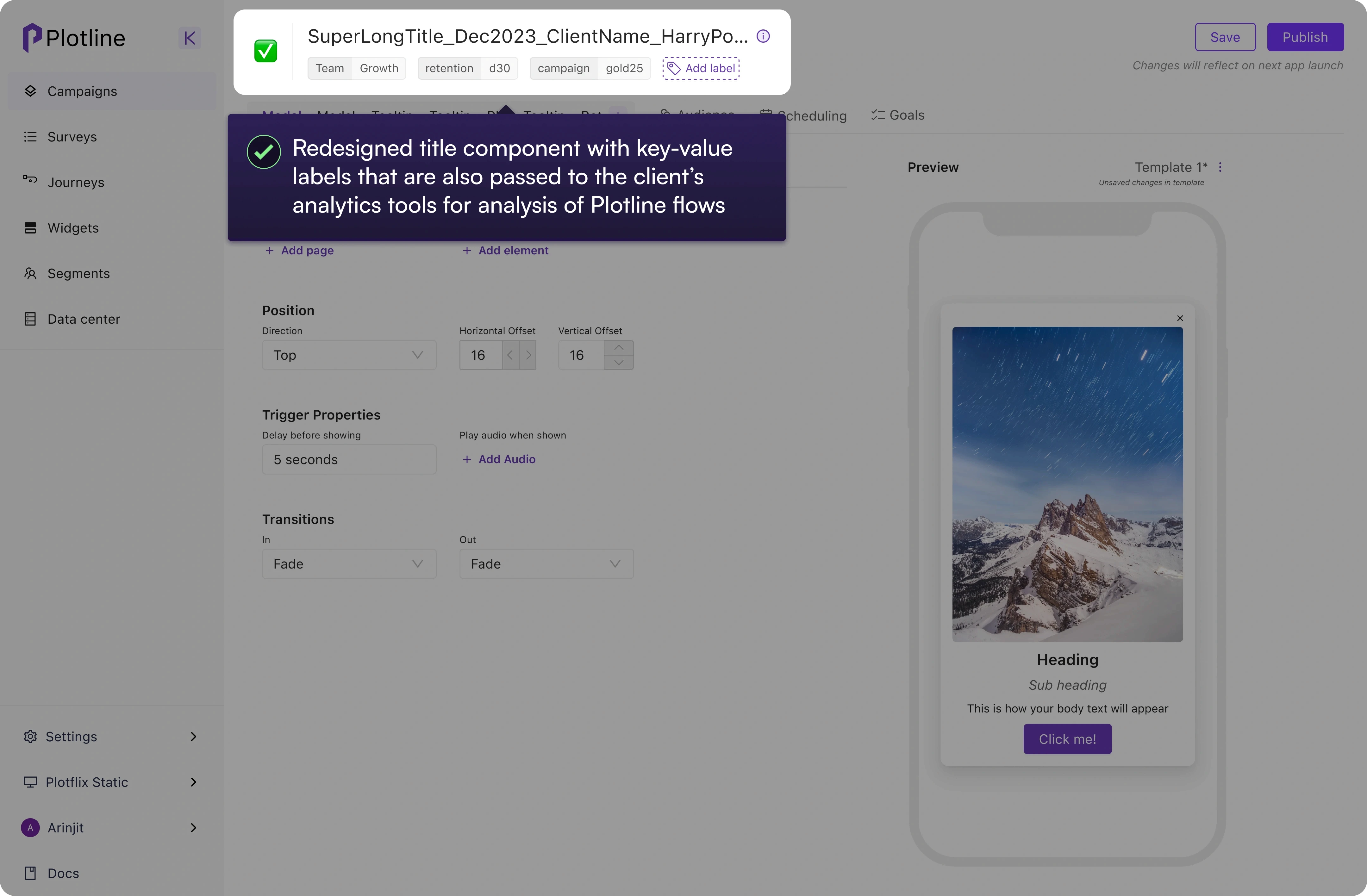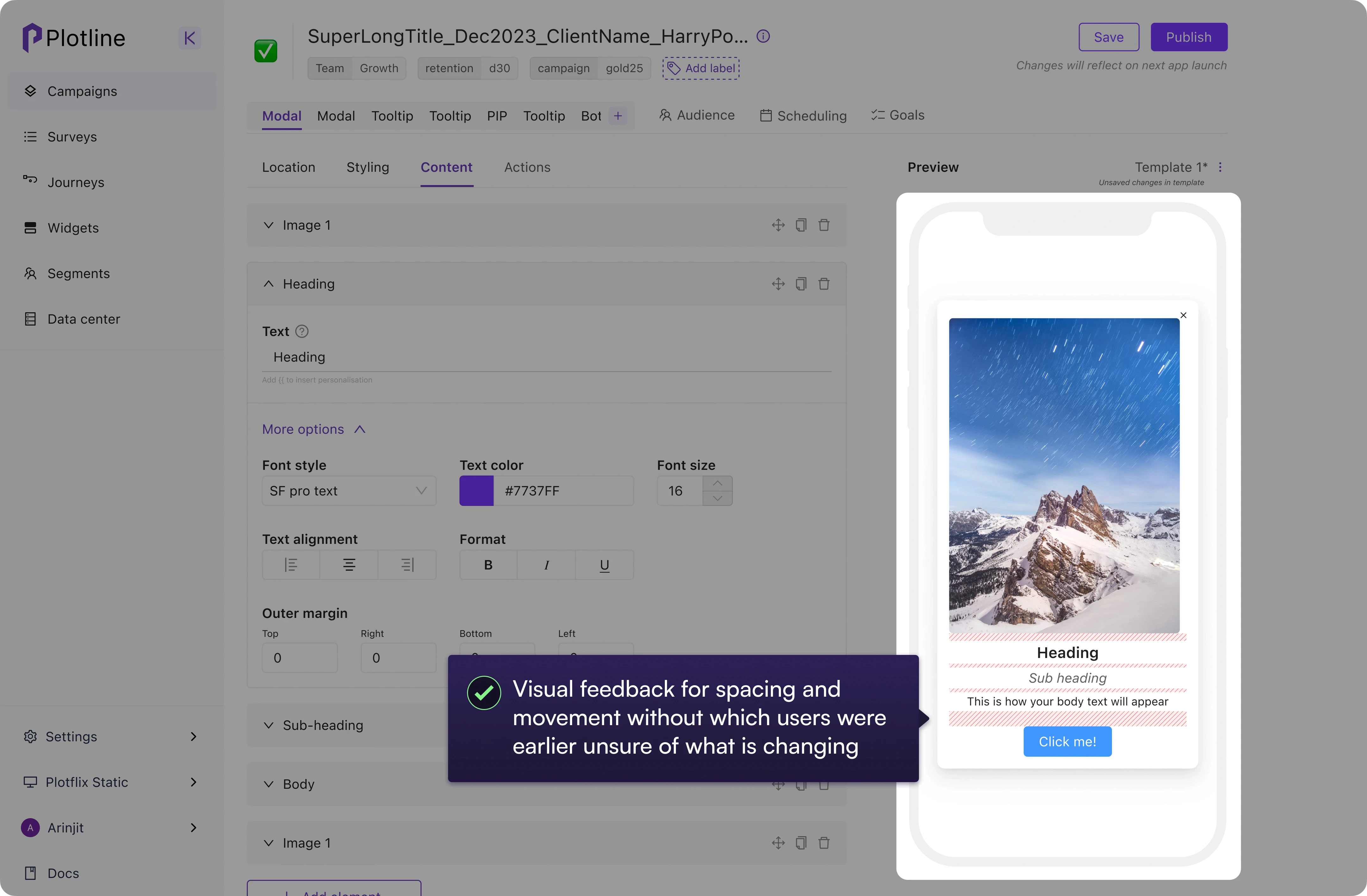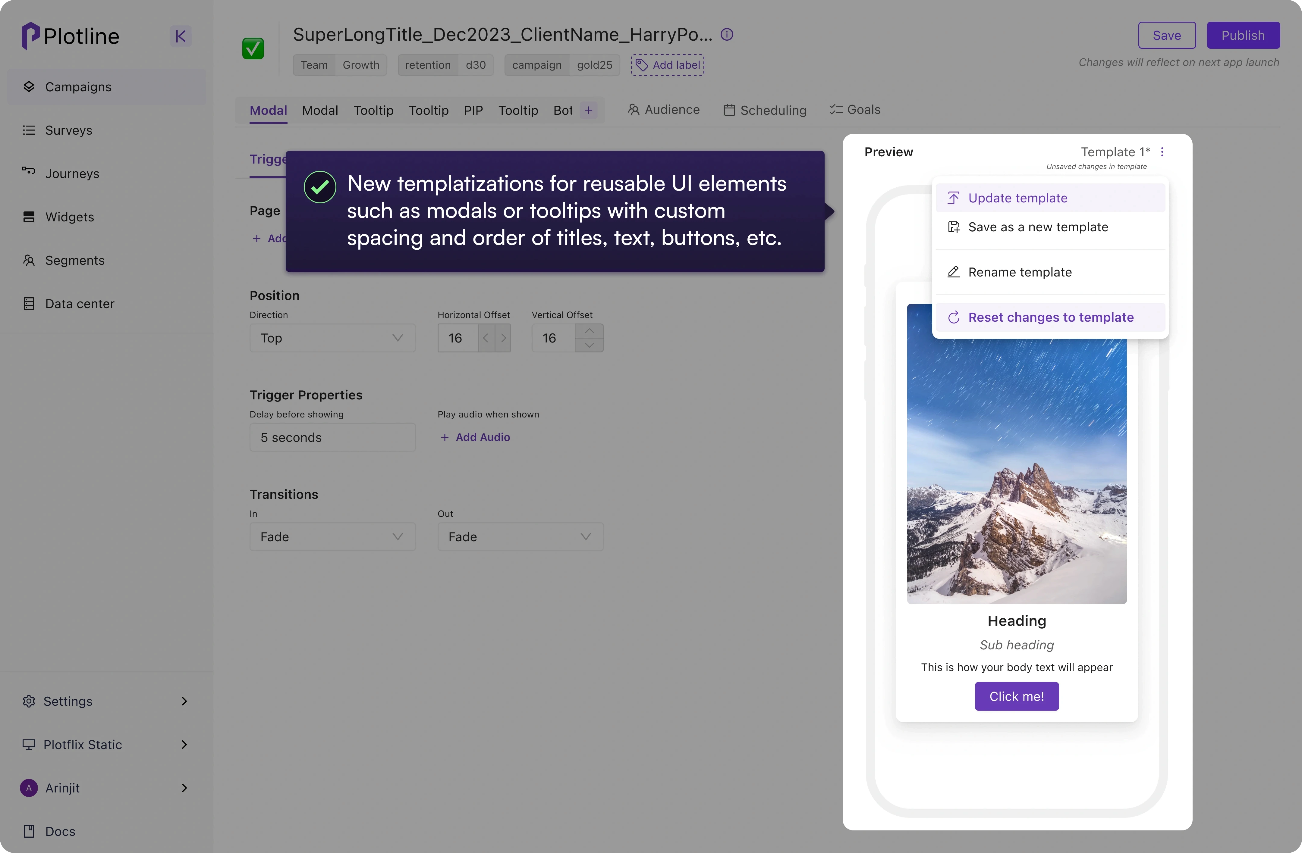 Plotline is a SaaS product that enables marketers and growth managers to publish tooltips, modals, and bottom sheets (AKA in-app engagement) without requiring developer involvement.