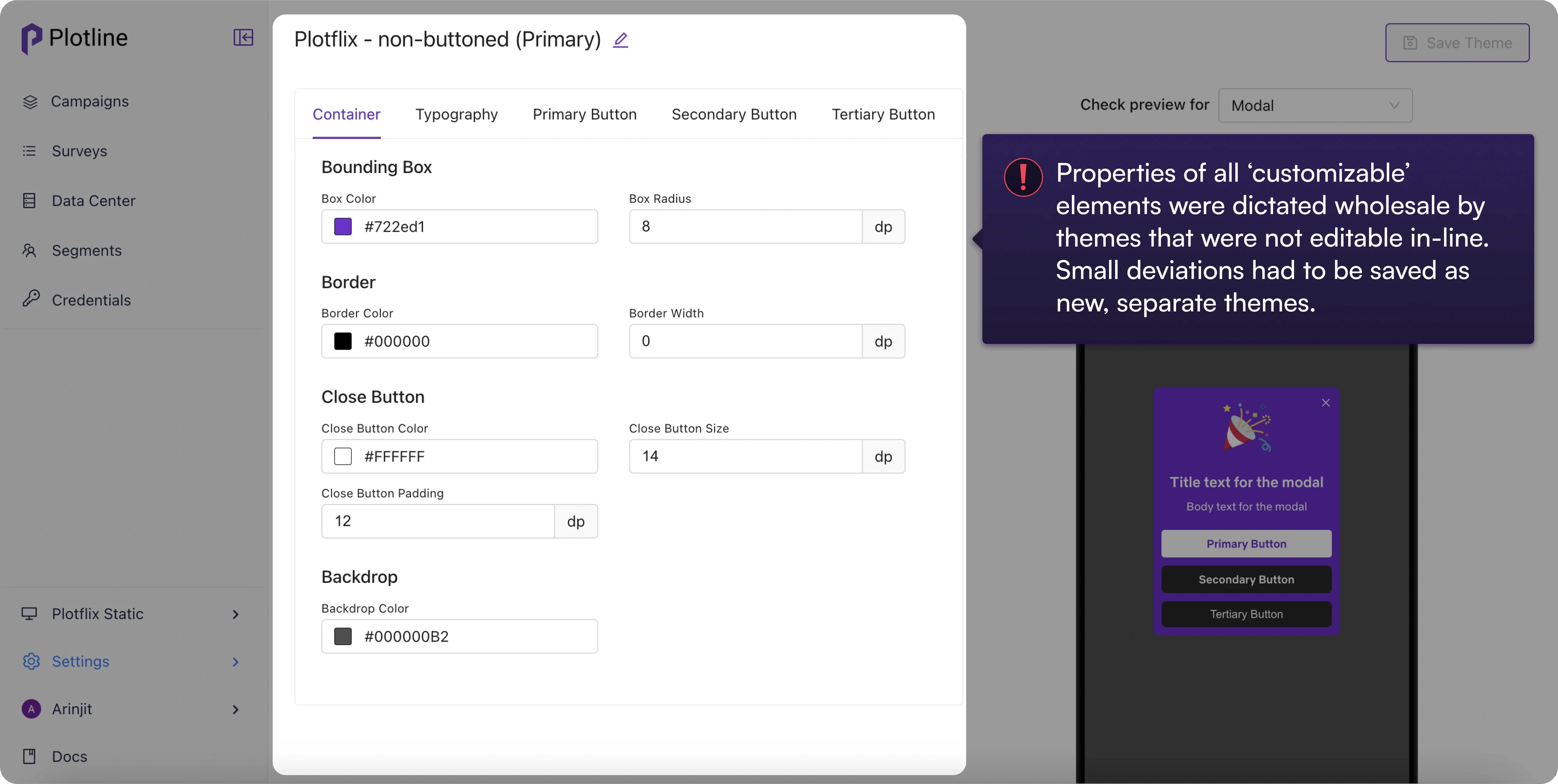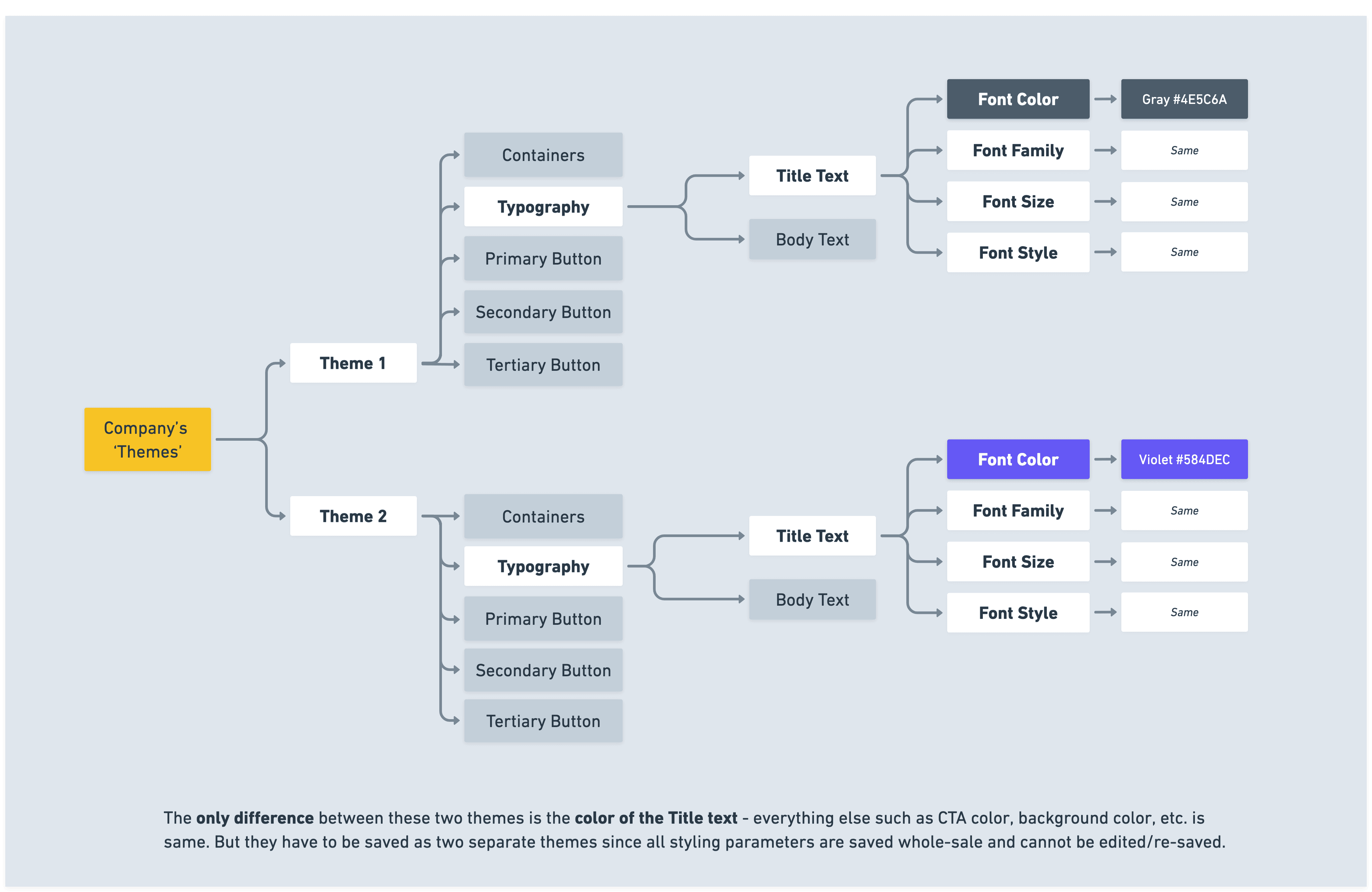 No edits to existing themes: If one wasn’t happy with the styling change they made, they had to duplicate the theme to change just one variable such as color and save as a new theme.