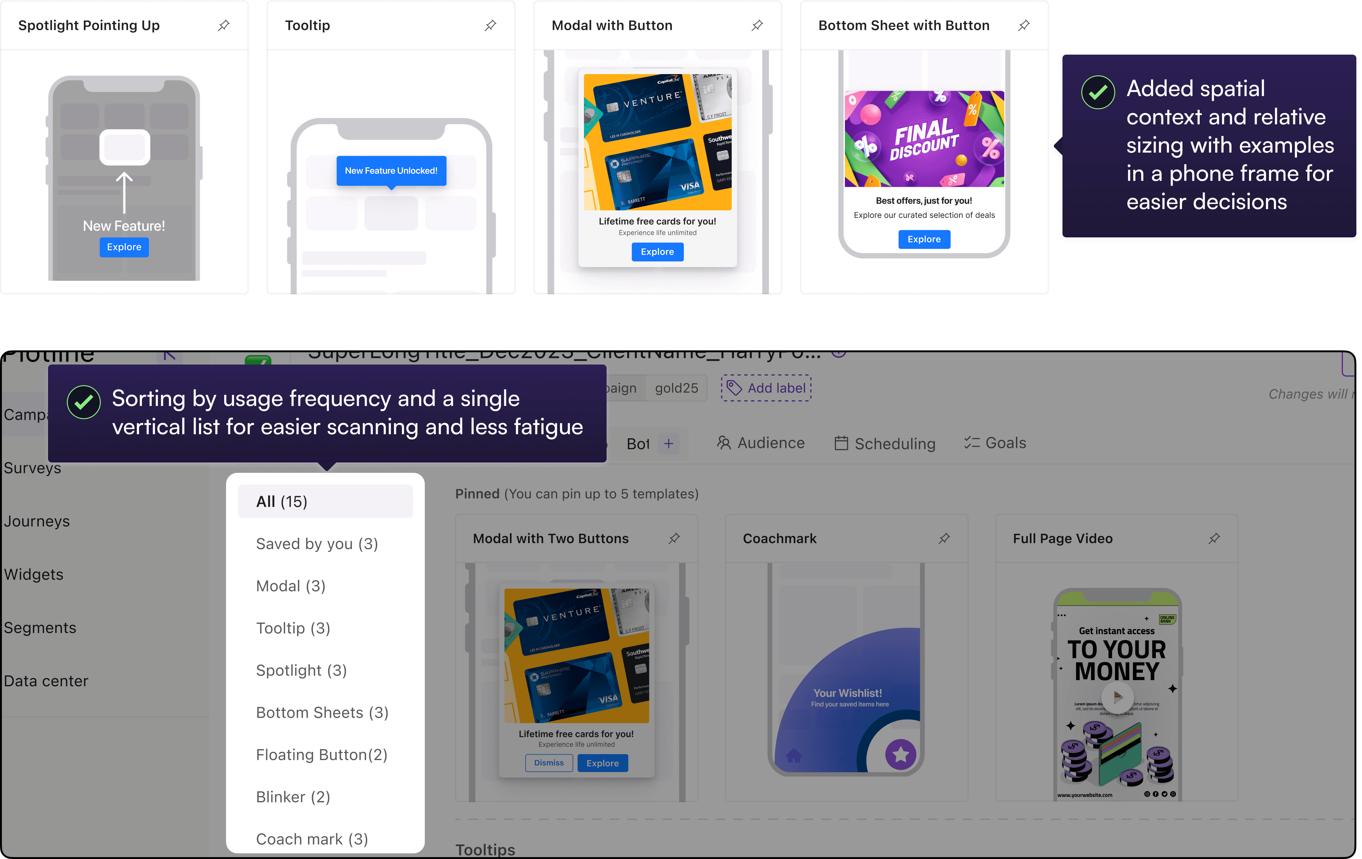 With the addition of templates, users could templatize and reuse combinations of styles, UI elements and assets without having to duplicate an entire campaign