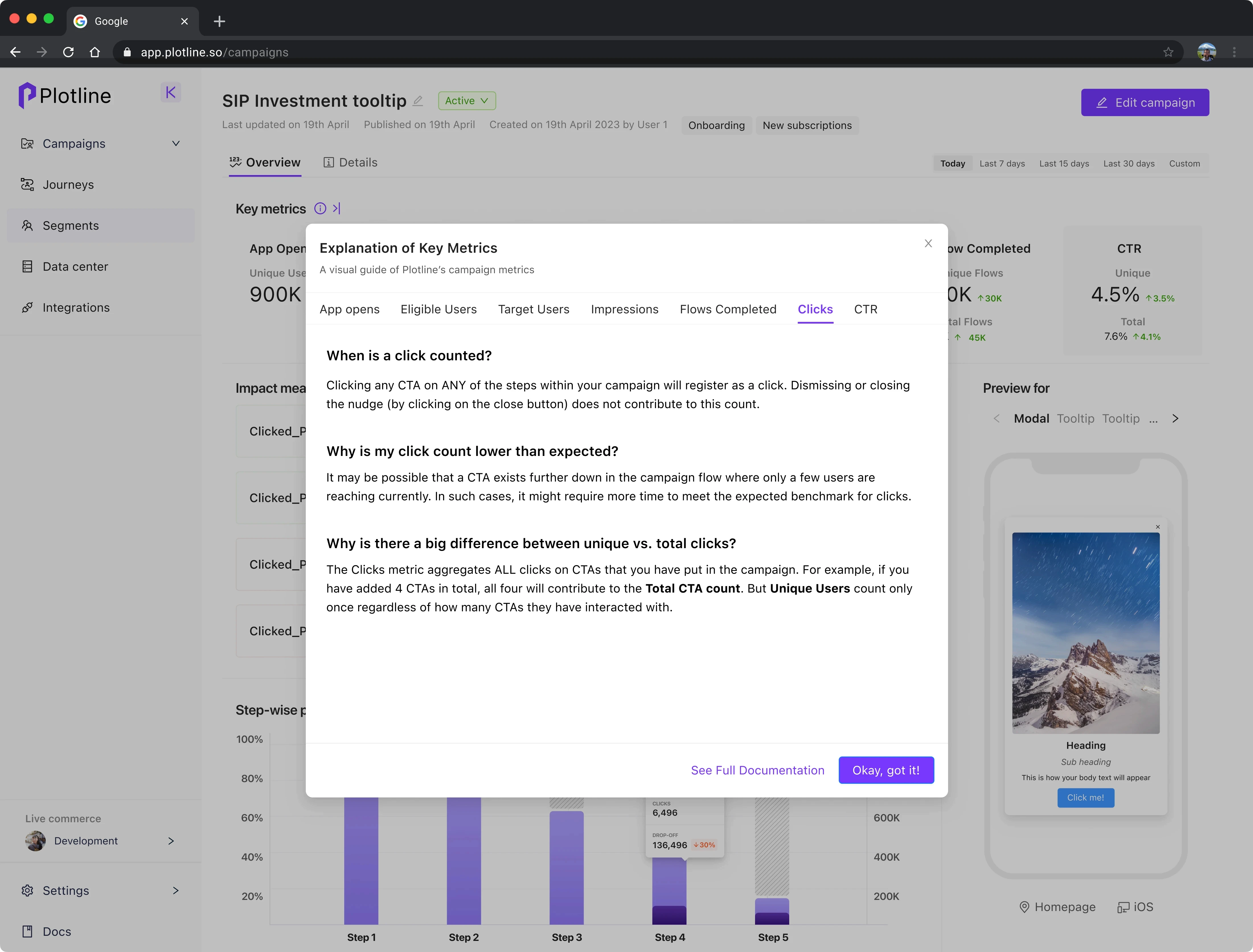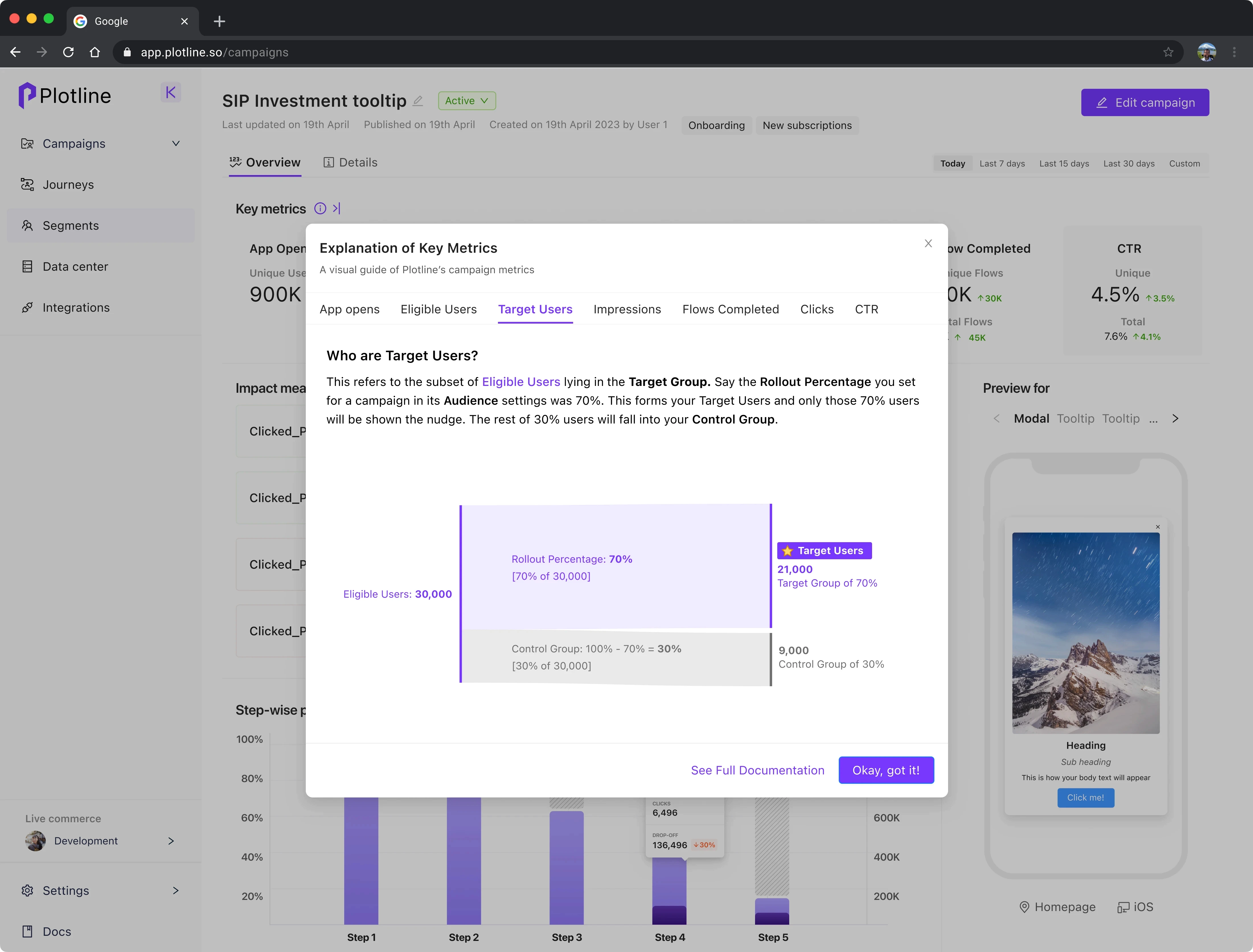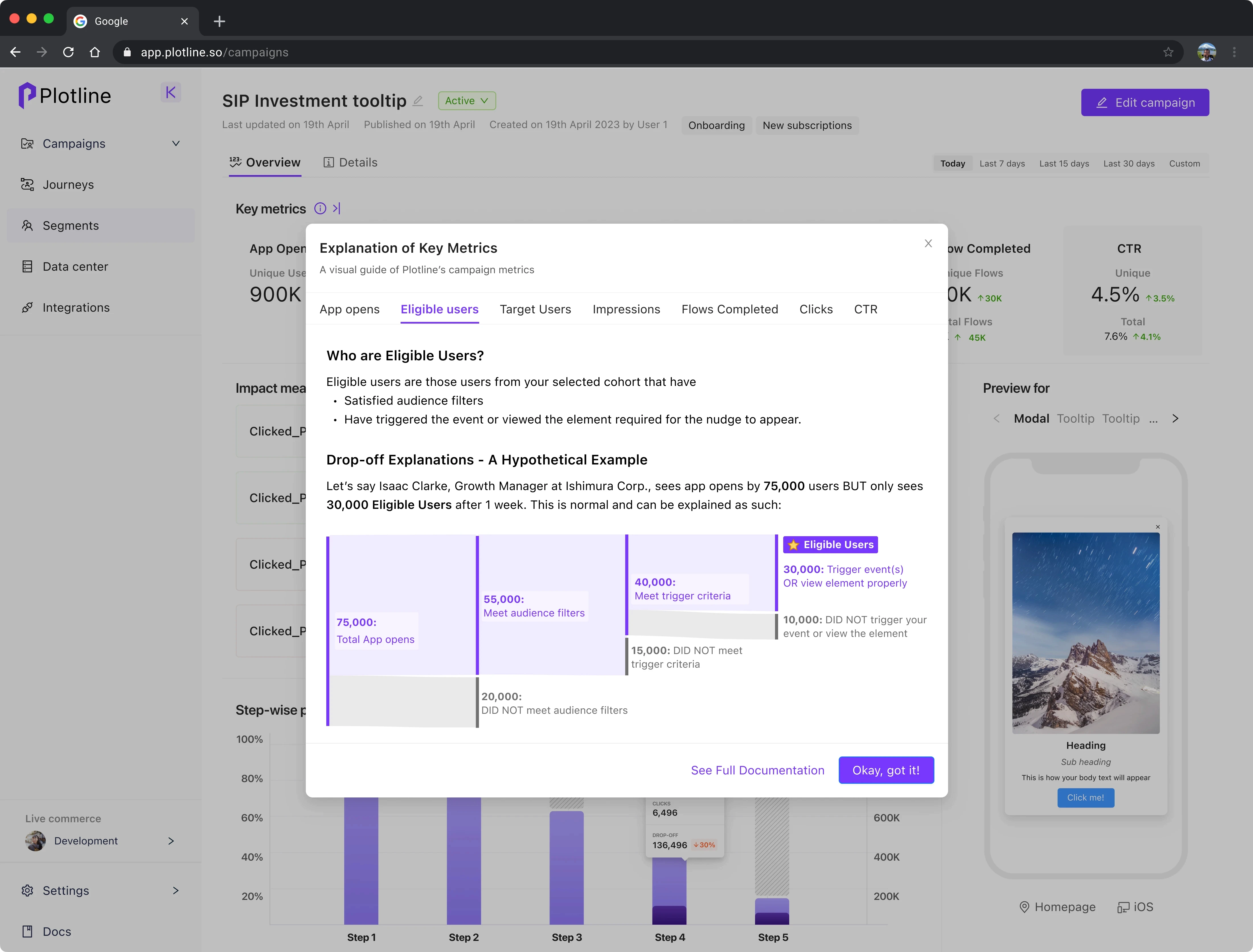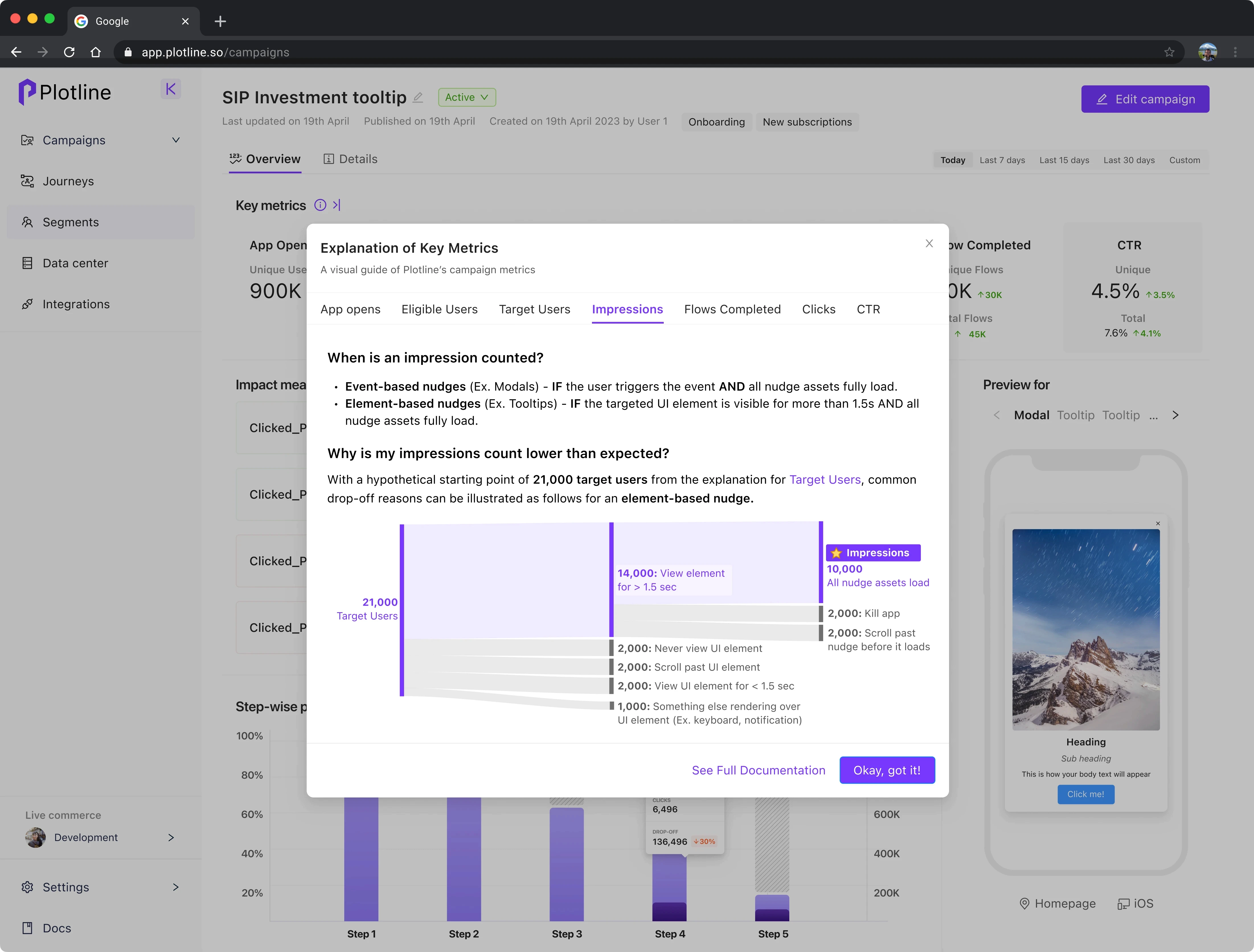 using Plotline for in-app nudge campaigns