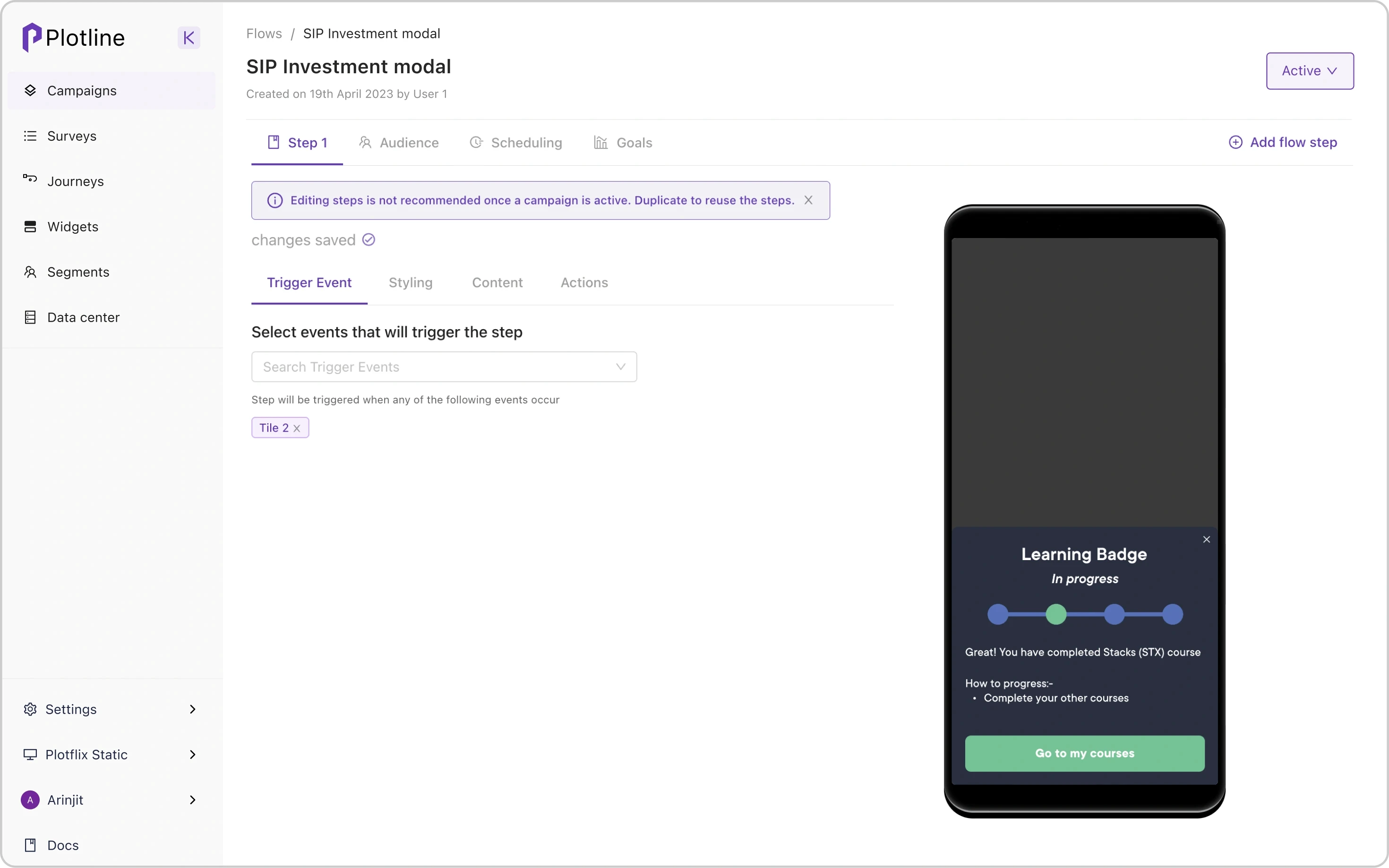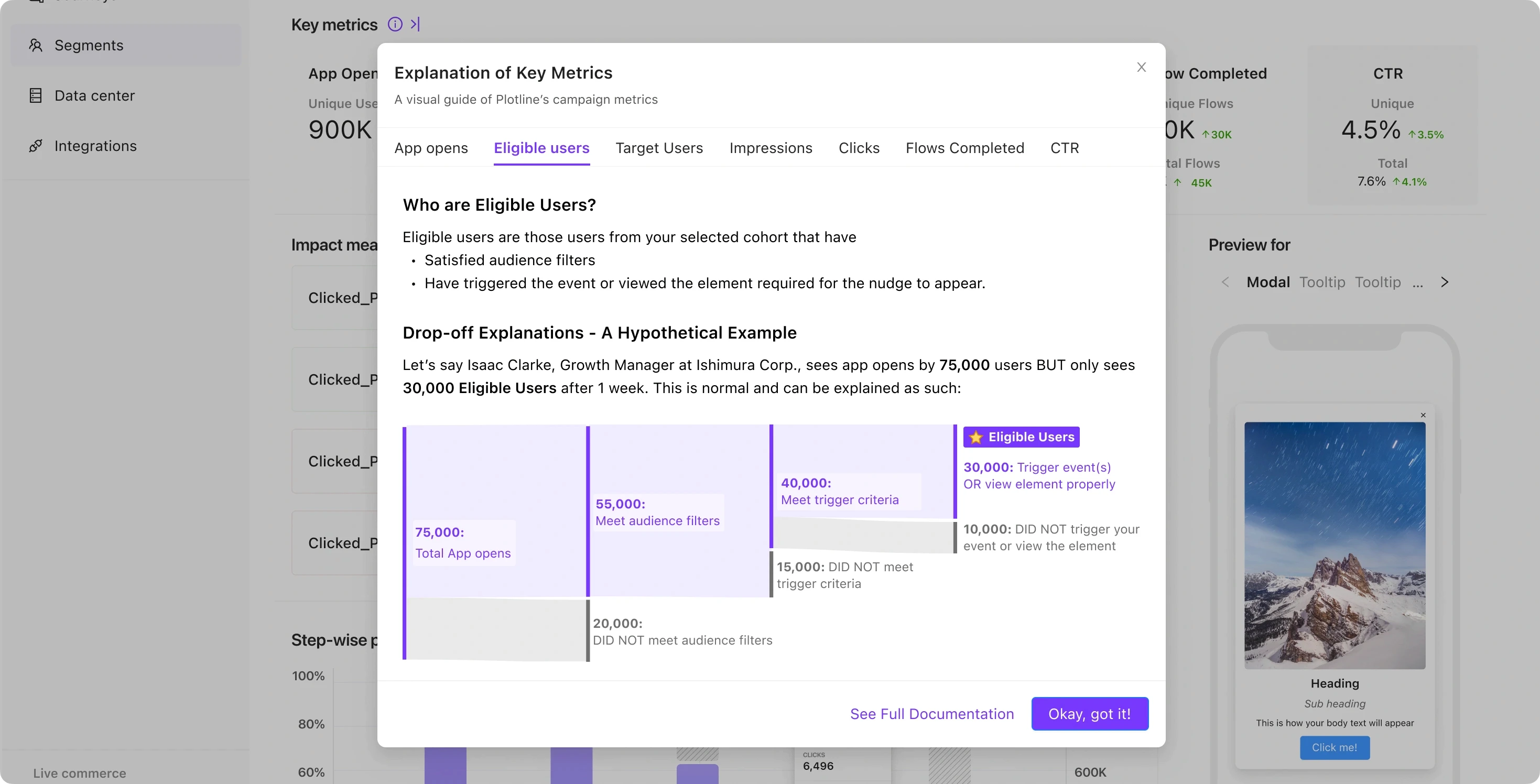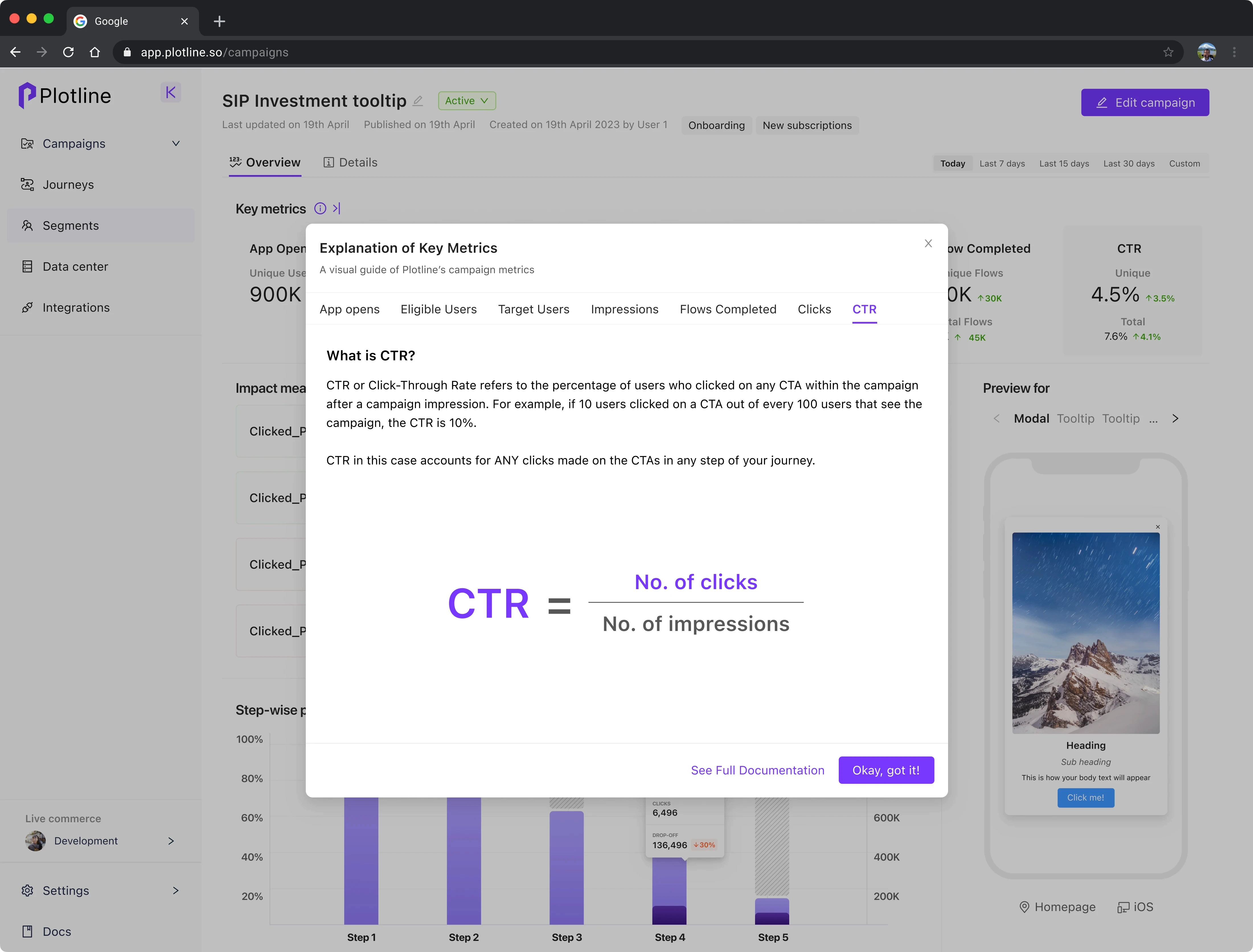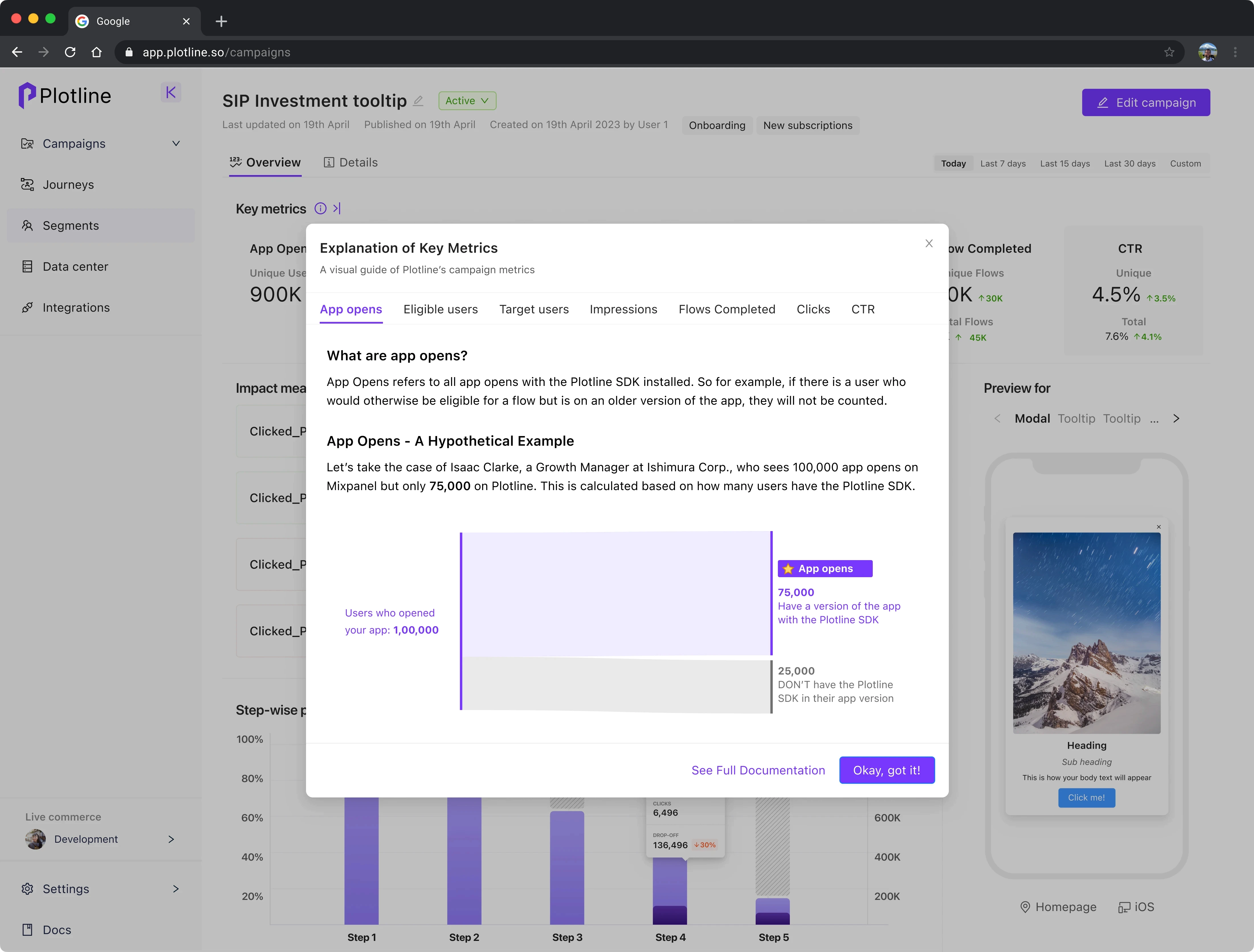 using Plotline for in-app nudge campaigns